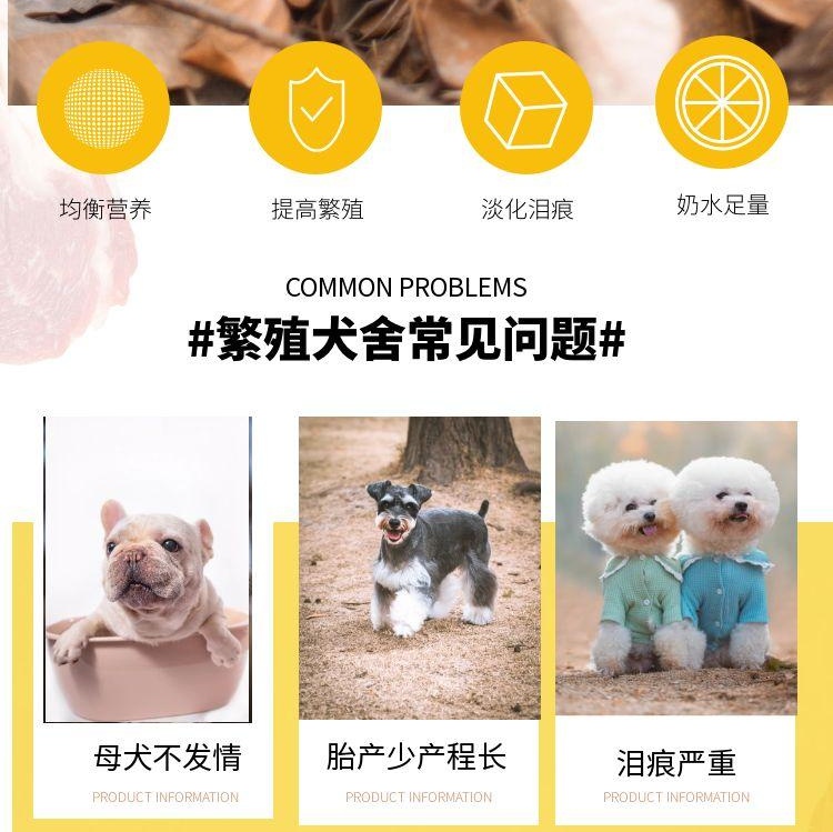 ●自配料加营养快见,提高母犬发情率繁殖效果好,提高窝产。