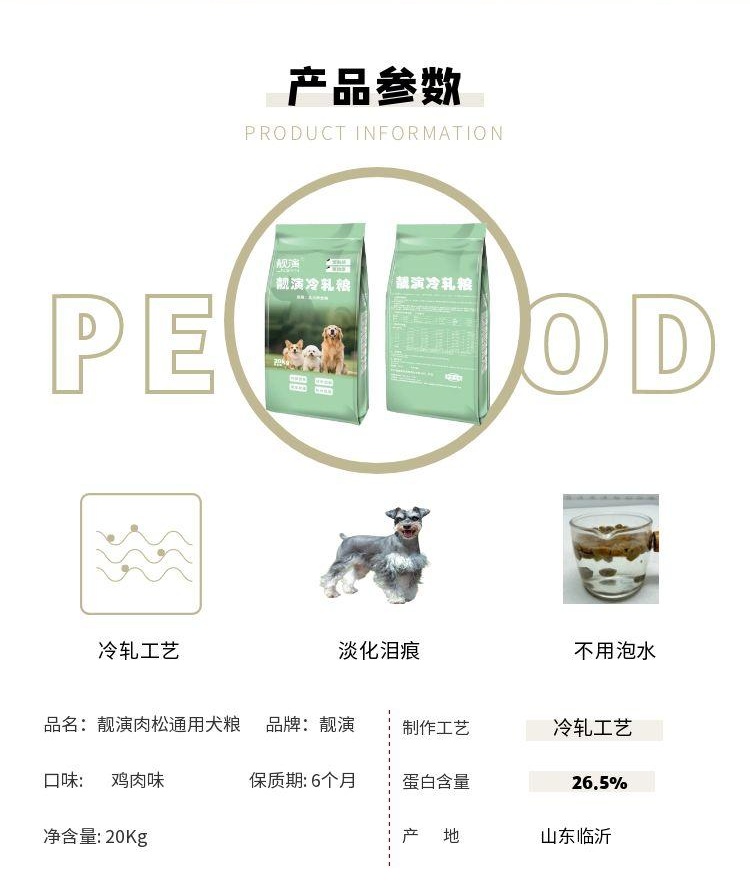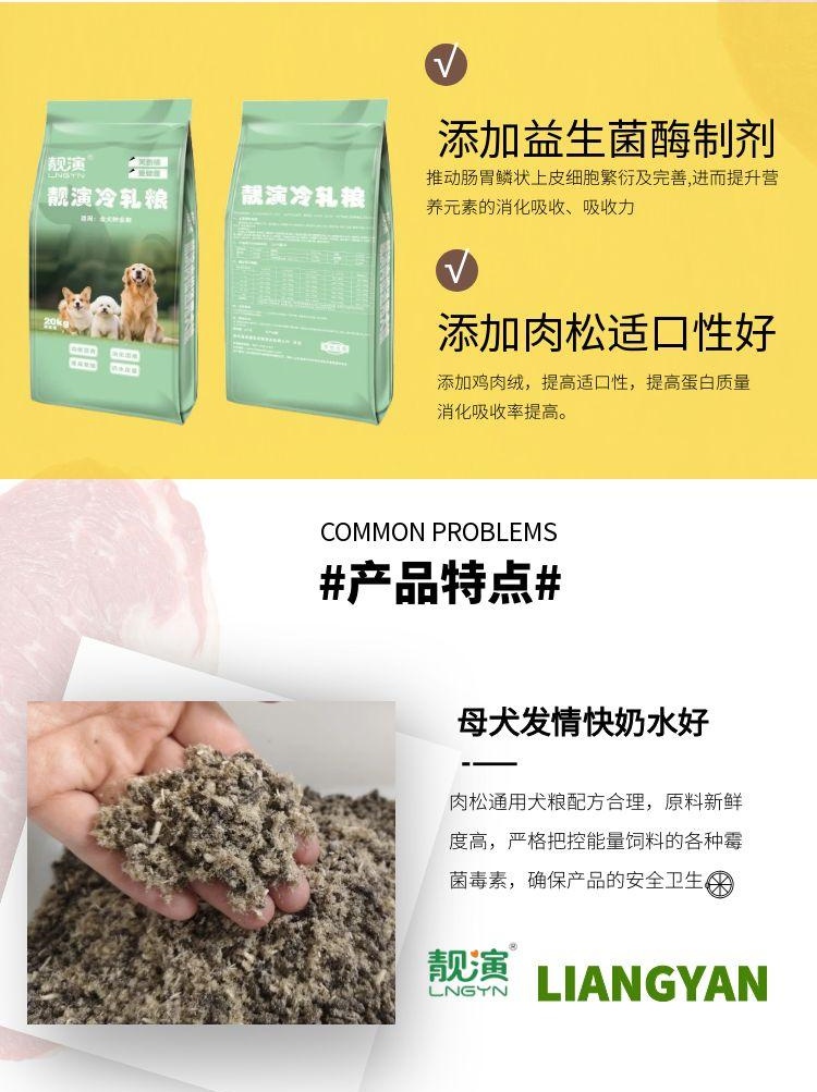 20kg靓演肉松奶糕犬粮犬舍繁殖冷轧粮幼犬认食开始使用不用泡淡化泪痕